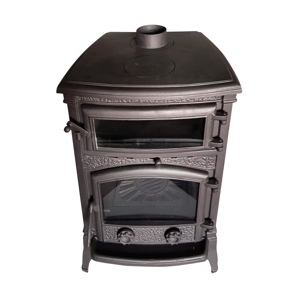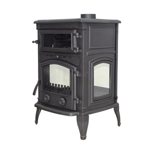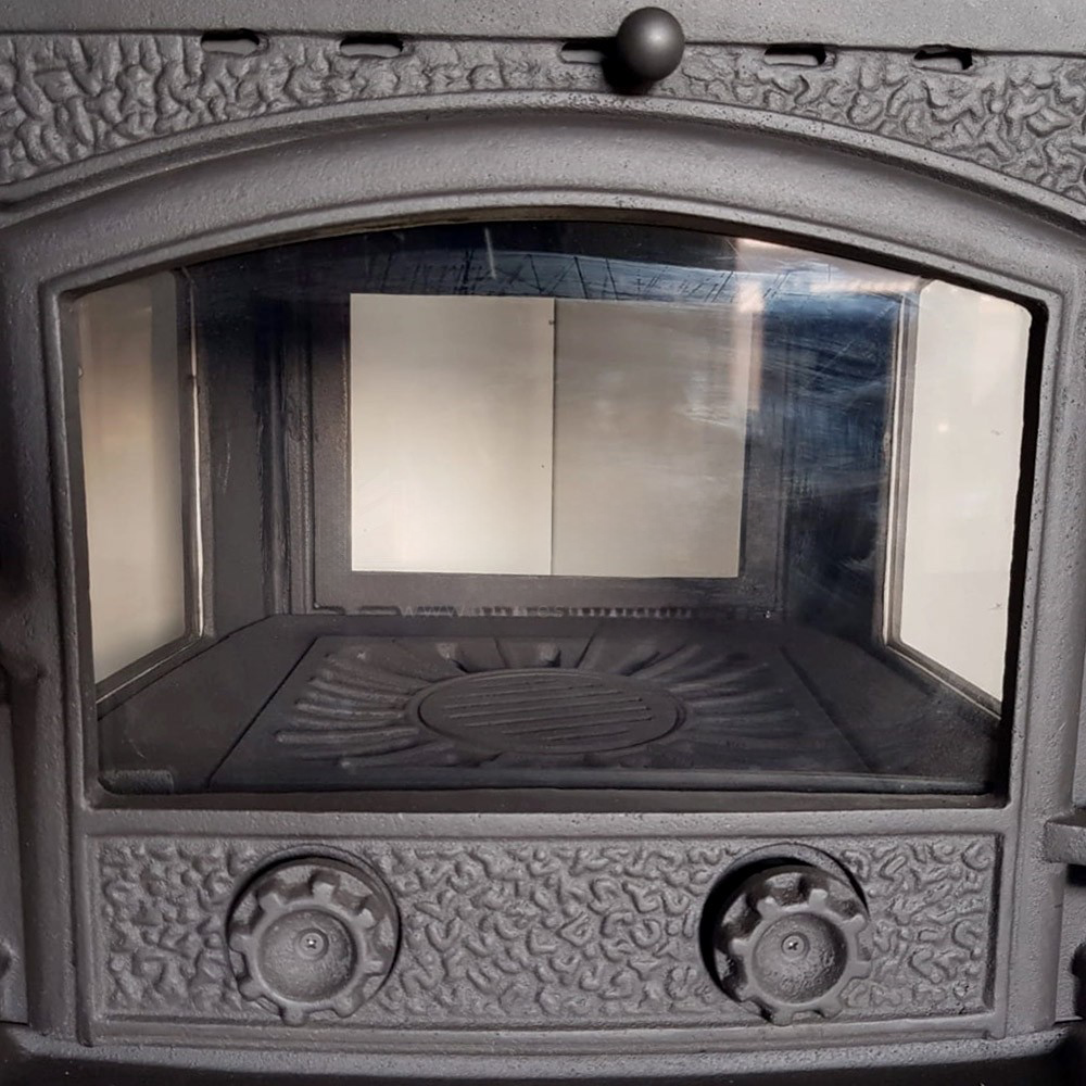 It is completely made of cast iron. The product has high temperature resistant (German Schott Robax) ceramic glass and these glasses are fully sealed in the product by using fireproof glass sealant.