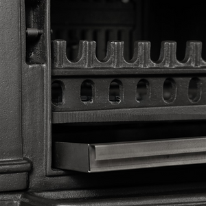 In the lower part of the stove, there is a wood storage chamber for storing and drying your wood used in the stove.