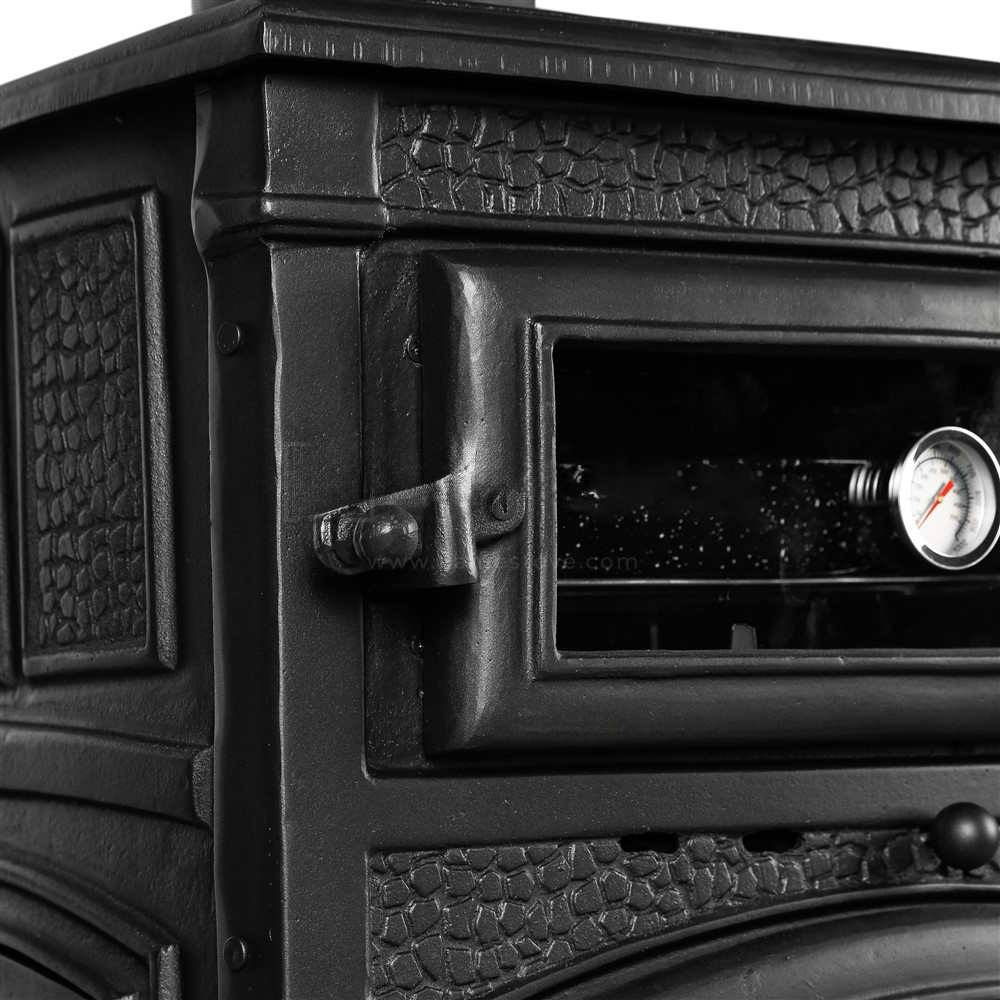 The oven in the stove is made of 1.2 mm sheet metal. 5 mm additional protection sheet is added under the oven to provide a better cooking in the oven and to increase the oven strength. Chimney outlet size: standard 13 cm or can be manufactured as 15 cm according to request