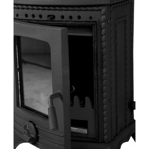 It is completely made of cast iron. The product has high temperature resistant (German Schott Robax) ceramic glass and these glasses are made of fireproof glass tiles.
