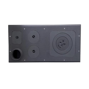 - SPECIFICATIONS: Flue diameter is 5.1" and it can be converted to 5.9" with a converter adapter. | The stove's top surface and covers are made of cast iron. | Cooking Chamber: 8x16 inches