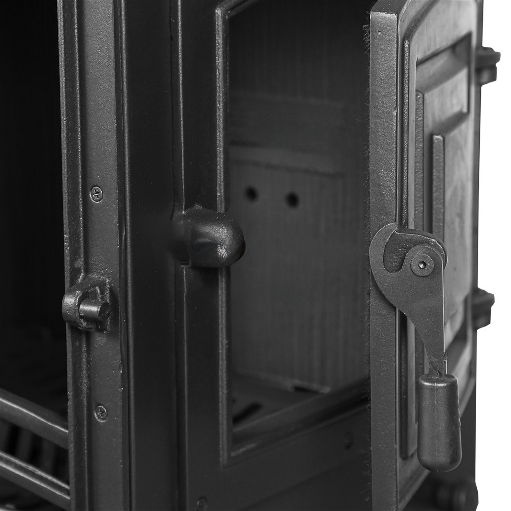 The outer part of the stove is steel and the outer surface is enameled, the inner part is made of cast iron and there is high temperature resistant (German schott-robax) glass on the front side.