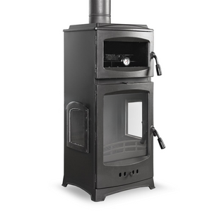 Since our products are solid fuel stoves, they can be used as wood and coal fuel. The oven in the stove is made of 1.2 mm sheet metal and the inner part of the oven is enameled. In order to provide a better cooking in the oven and to increase the oven strength, 5 mm additional protection sheet is added under the oven. The temperature inside the oven can be monitored thanks to the thermostat on the front glass of the oven.