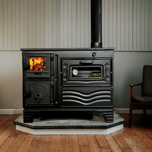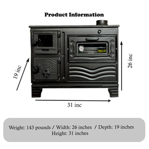 - WARM YOUR HOME: Enjoy a cast iron, cozy fire in your home with our cast iron wood burning oven ! This exclusive wood burning is perfect for warming rooms up to 1000 square feet.
