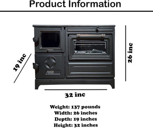 - MULTIFUNCTIONAL: HEATING & COOKING: The kuzine-style design offers both heating and cooking functions. The 8x16-inch large cooking surface is compatible with pots, kettles, and other cookware. The spacious oven compartment is perfect for baking bread, cooking meals, or slow-cooking dishes.