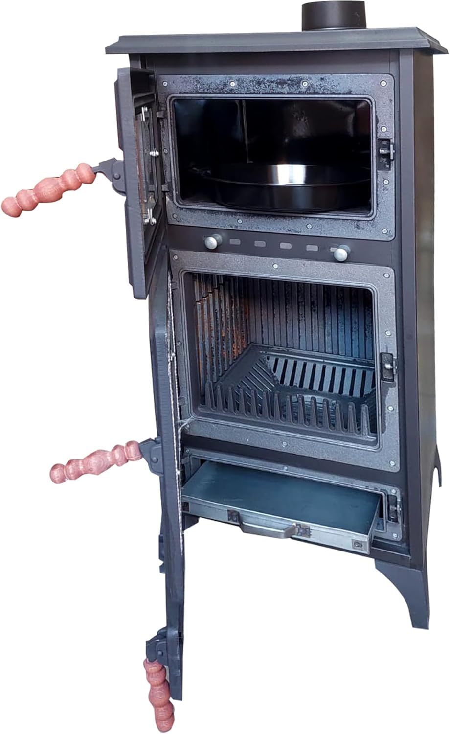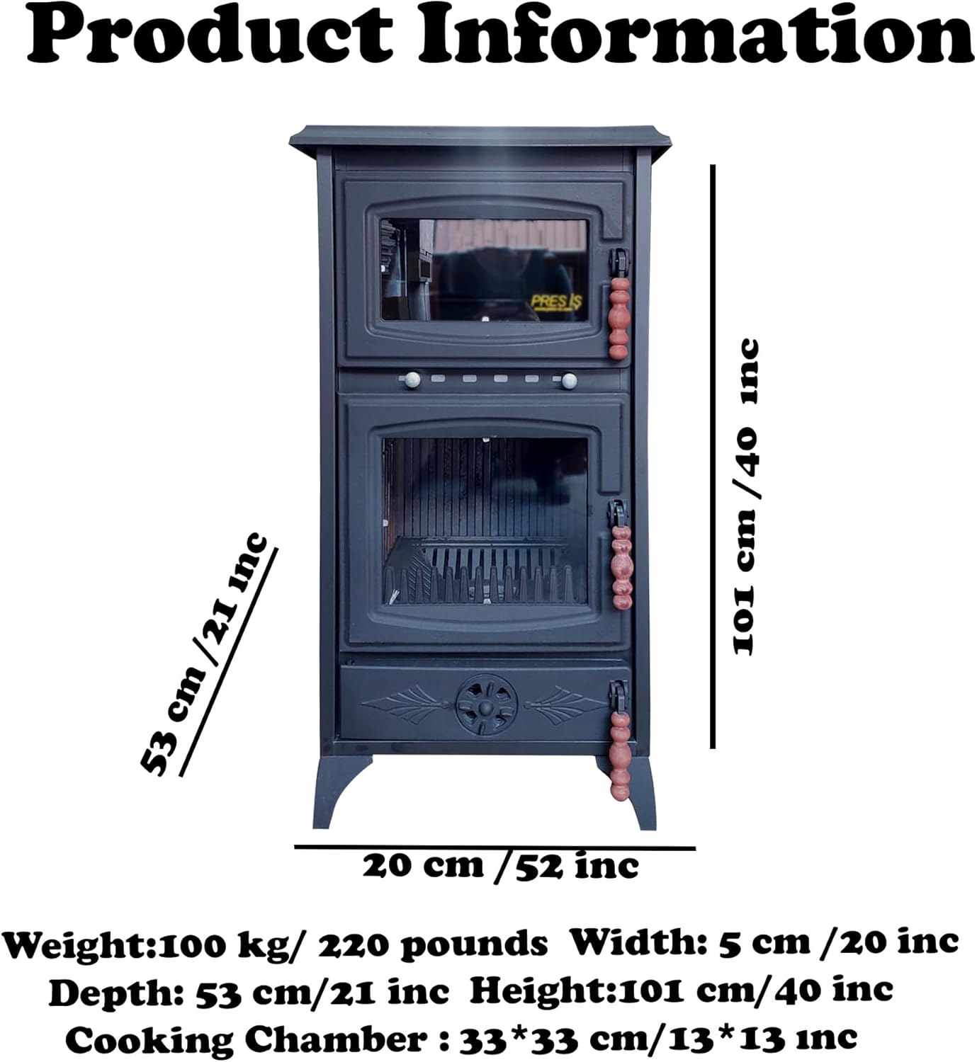 - MULTIFUNCTIONAL: HEATING & COOKING: The kuzine-style design offers both heating and cooking functions. The 8x16-inch large cooking surface is compatible with pots, kettles, and other cookware. The spacious oven compartment is perfect for baking bread, cooking meals, or slow-cooking dishes.