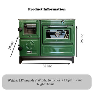 Green Cast Iron Stove, Burning Fireplace Wood Stove Cooker Stove Farmhouse Kitchen Home Stove With Oven Fire Pit Gift Transformative Gift