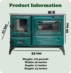 - MULTIFUNCTIONAL: HEATING & COOKING: The kuzine-style design offers both heating and cooking functions. The 8x16-inch large cooking surface is compatible with pots, kettles, and other cookware. The spacious oven compartment is perfect for baking bread, cooking meals, or slow-cooking dishes.
